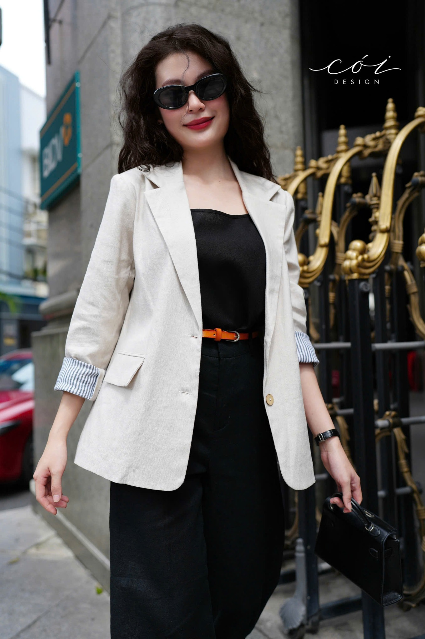 - Tính năng: Blazer linen được cắt may thủ công từ vải linen tưng, chất vải xịn, ít nhăn. Form áo dáng suông, màu sắc trẻ trung, không kén dáng người mặc. Blazer dễ rất phối với nhiều loại quần áo khác nhau