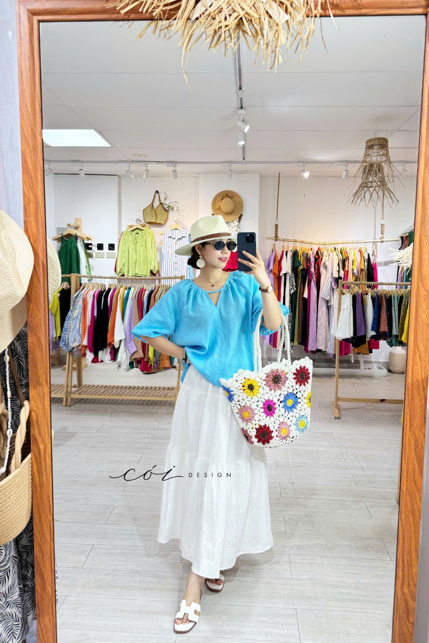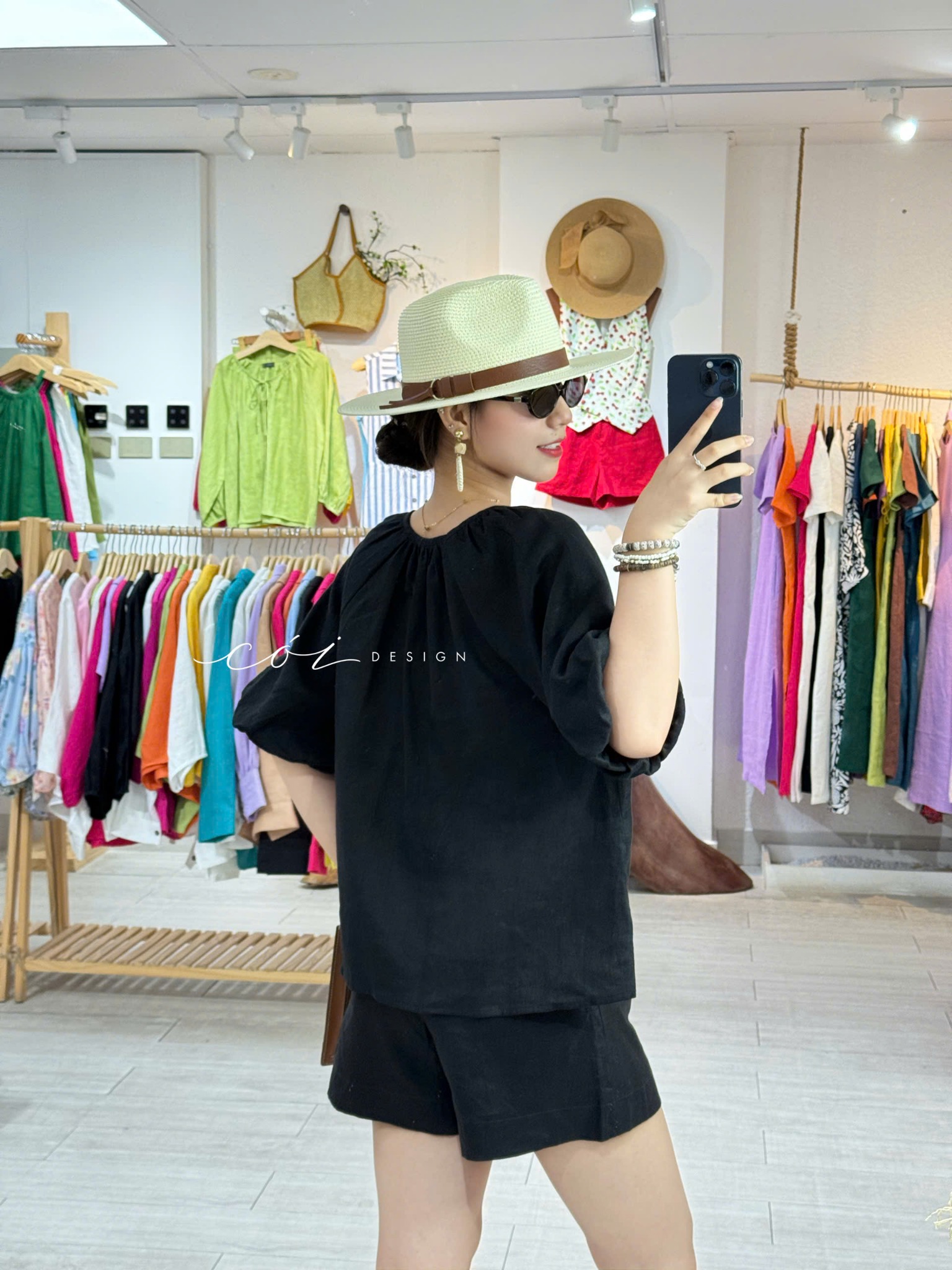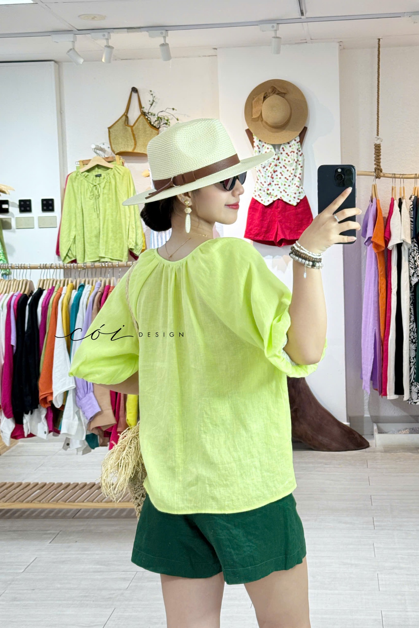 Áo cổ xếp nhúng tay bí linen tưng premium Cói Design