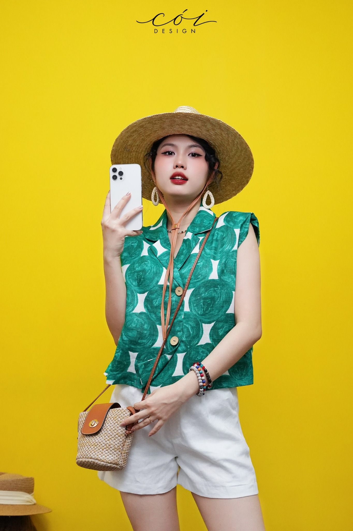 Áo linen danton sát nách họa tiết Cói Deisgn