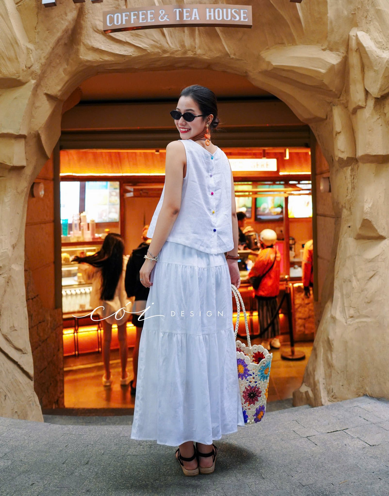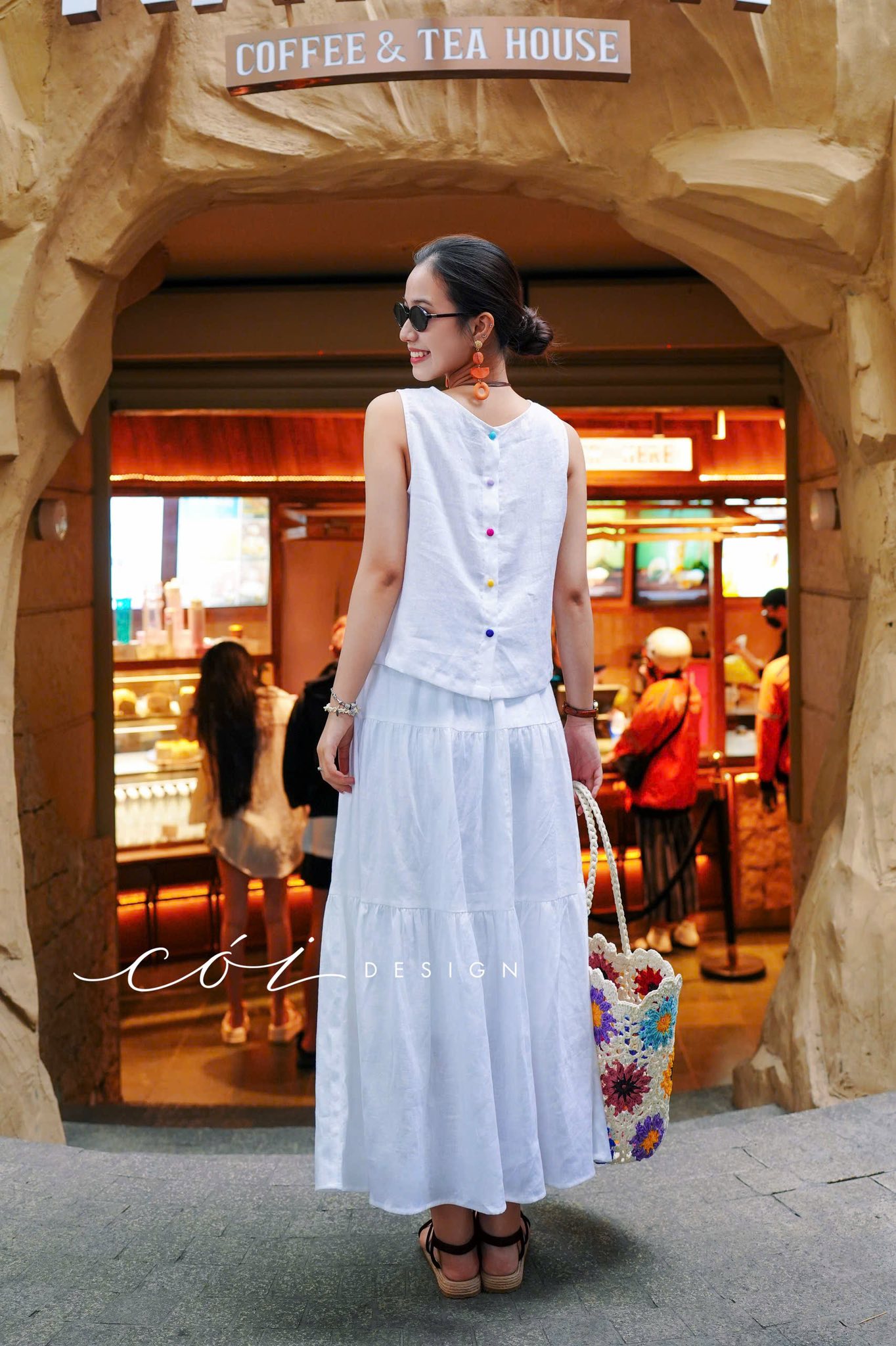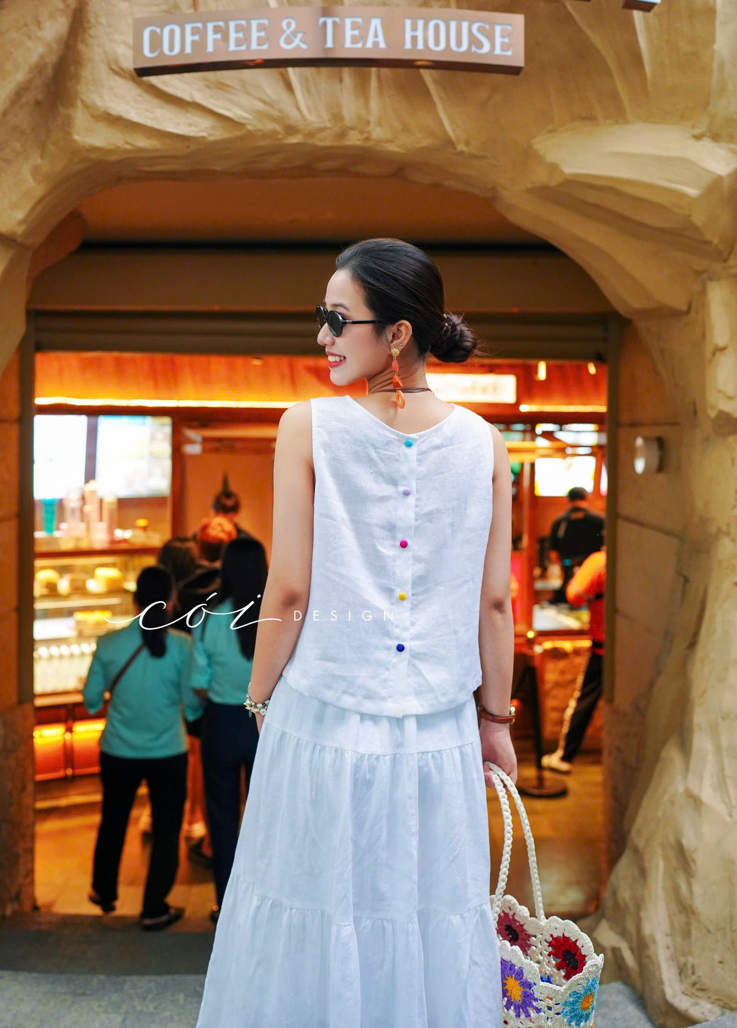 Áo sát nách nút bọc lưng nhiều màu linen tưng premium Cói Design