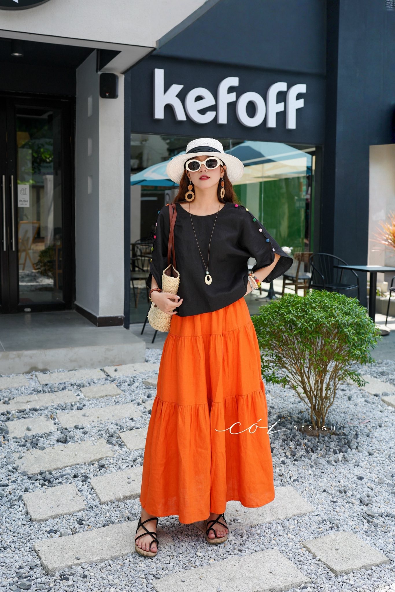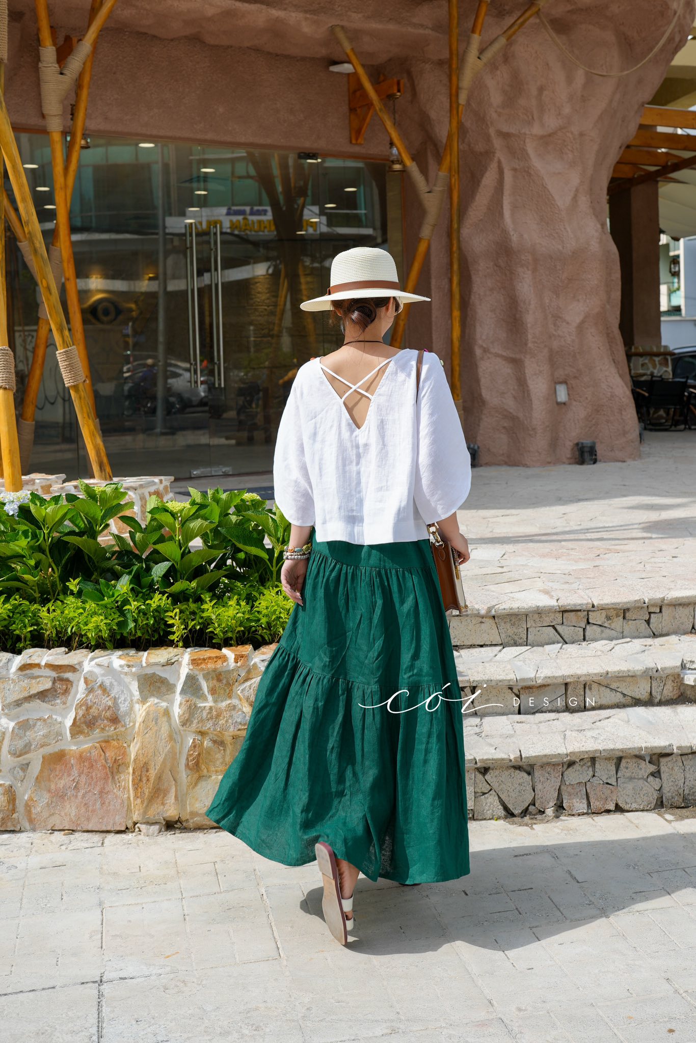 Áo tay rơi đan chéo lưng linen tưng premium Cói Design