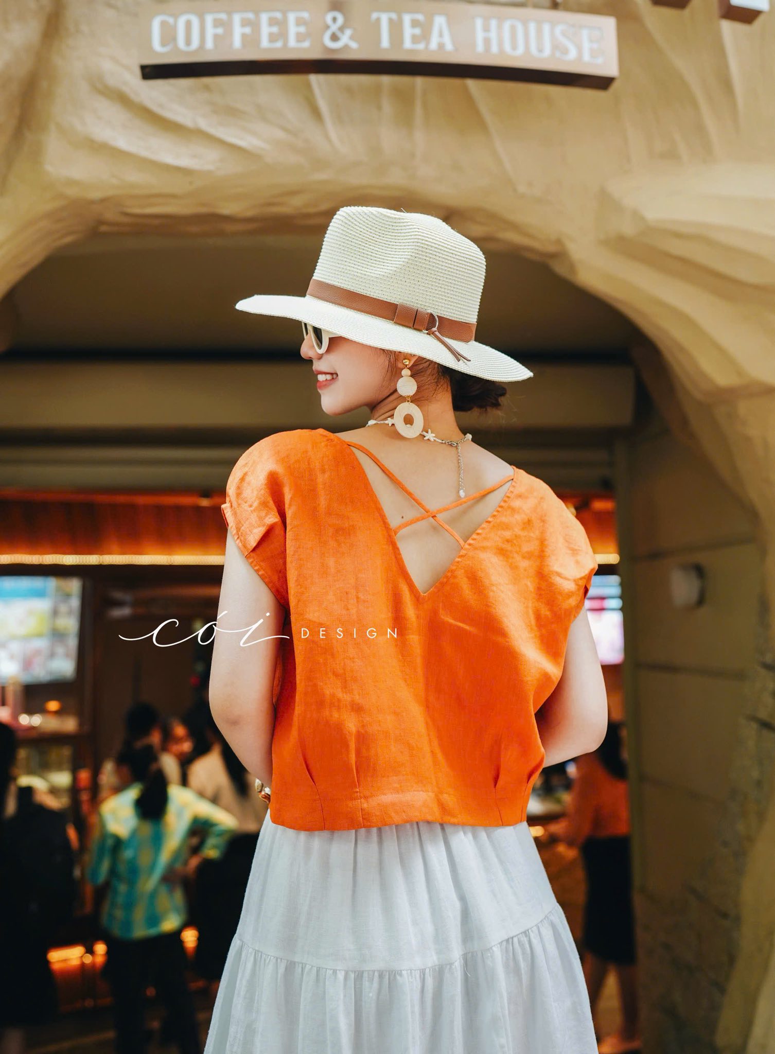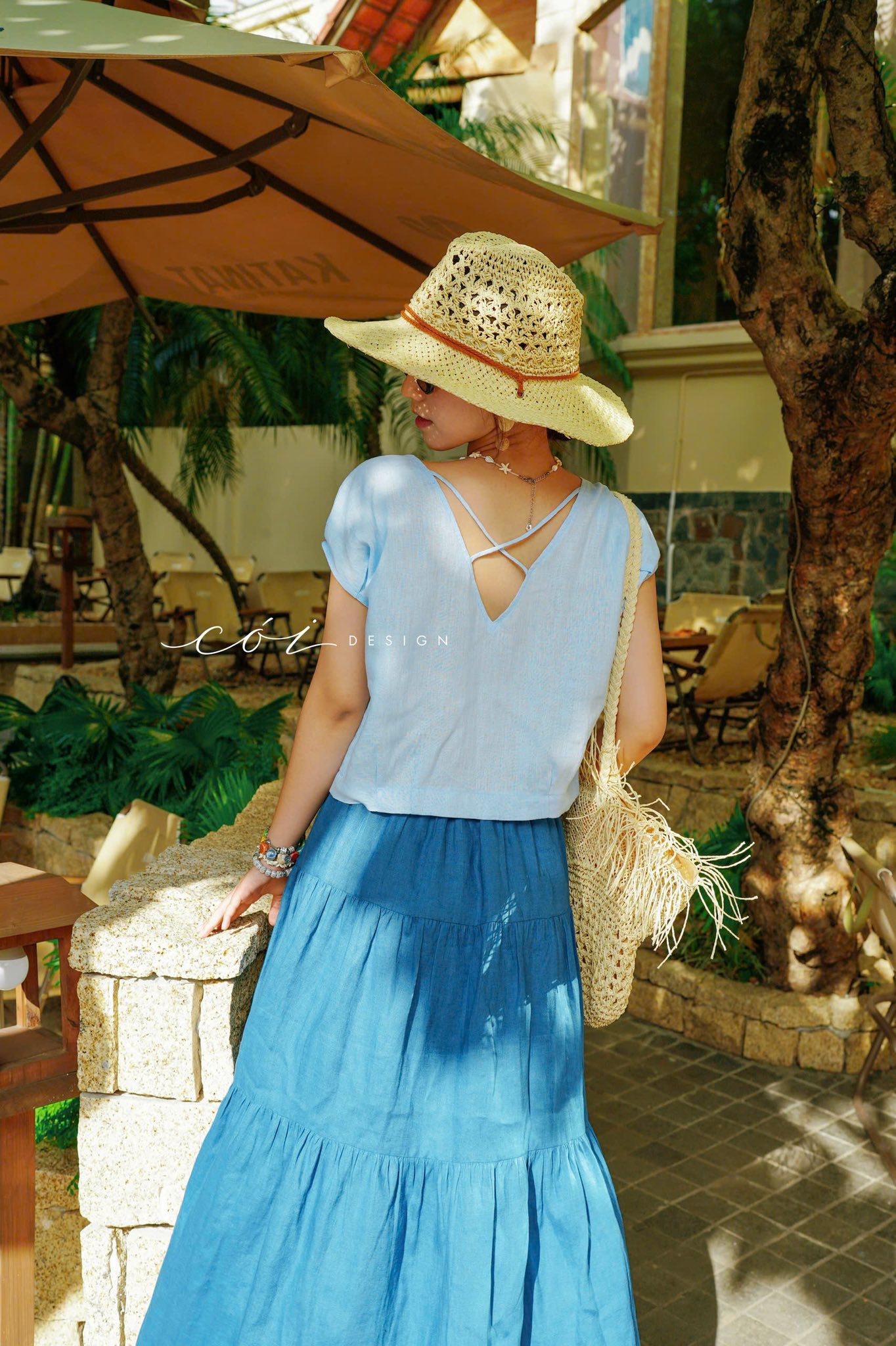 Áo tay xếp lưng đan dây chéo linen tưng premium Cói Design