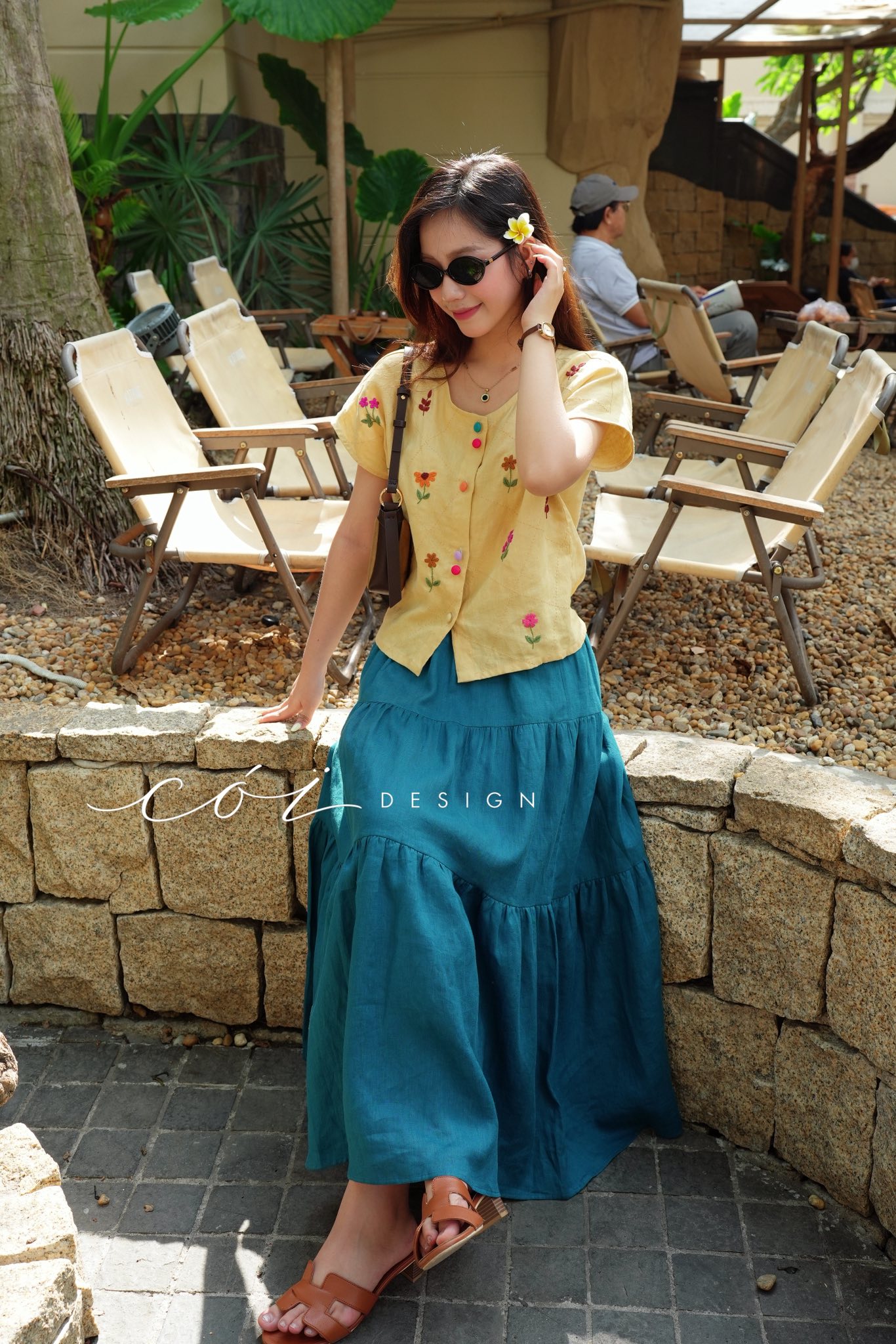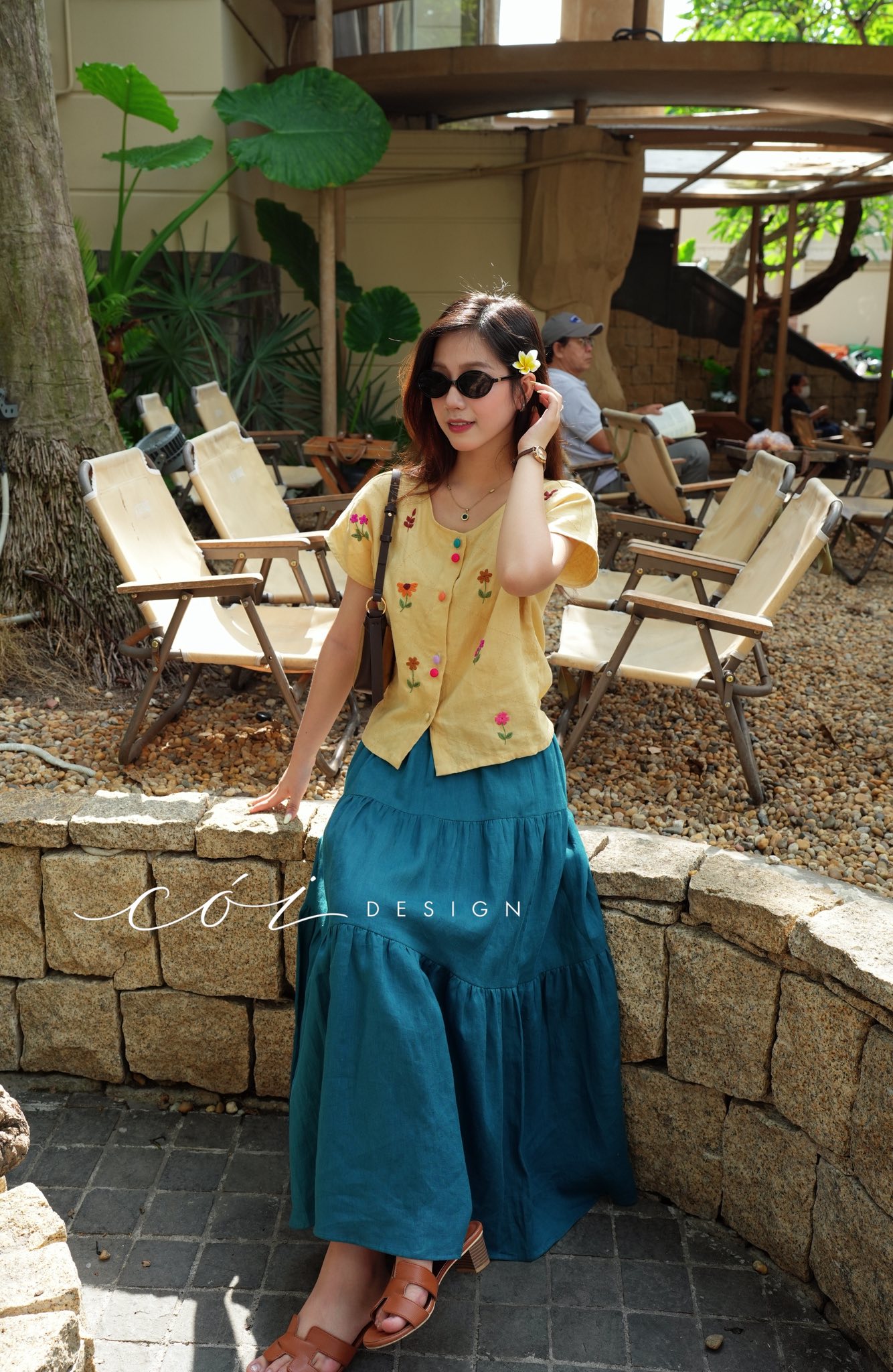 Áo thêu hoa ô vuông linen tưng premium Cói Design