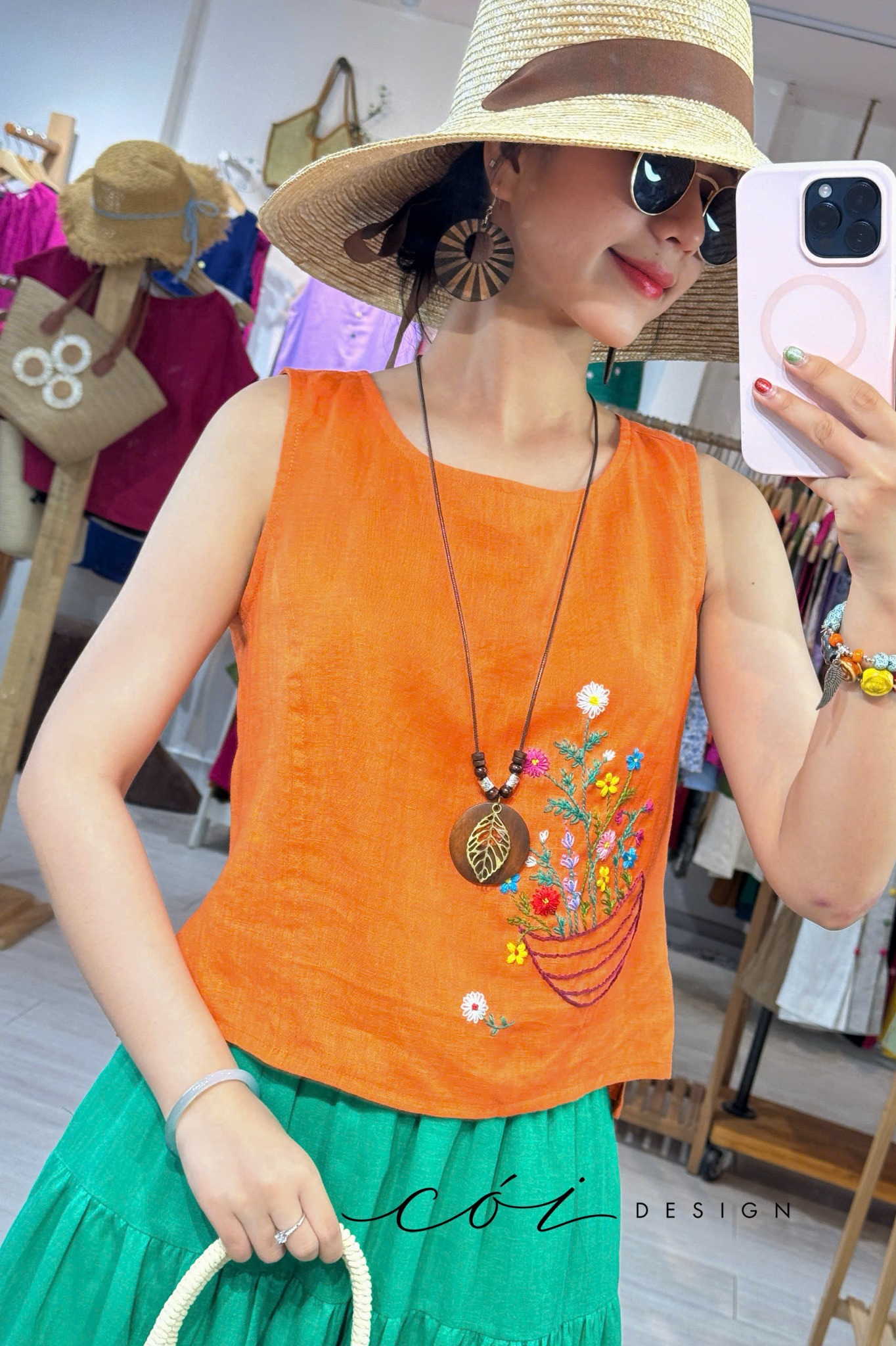 Áo thêu tay Giỏ Hoa Nhỏ ( khuy dây) Cói Design