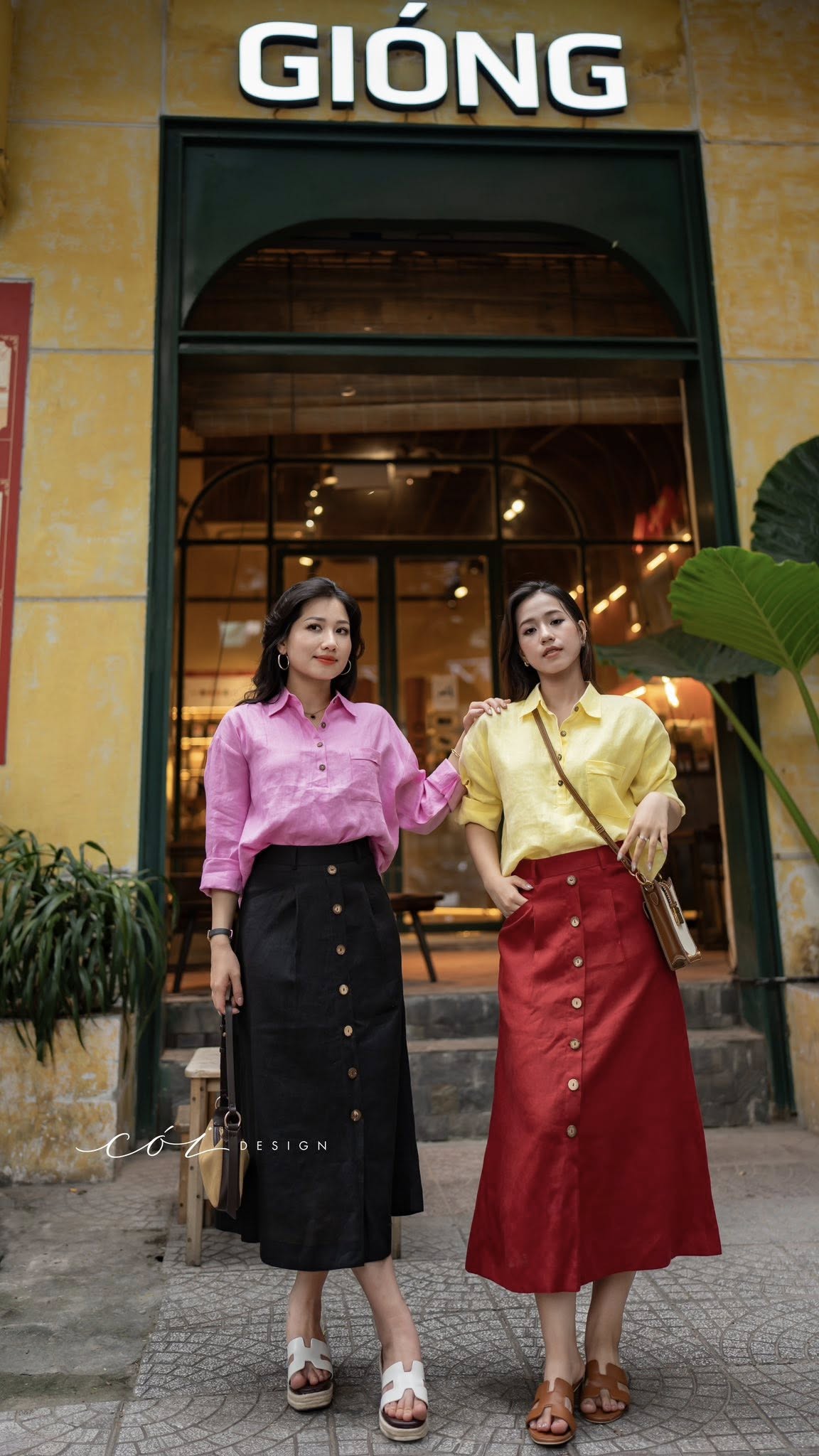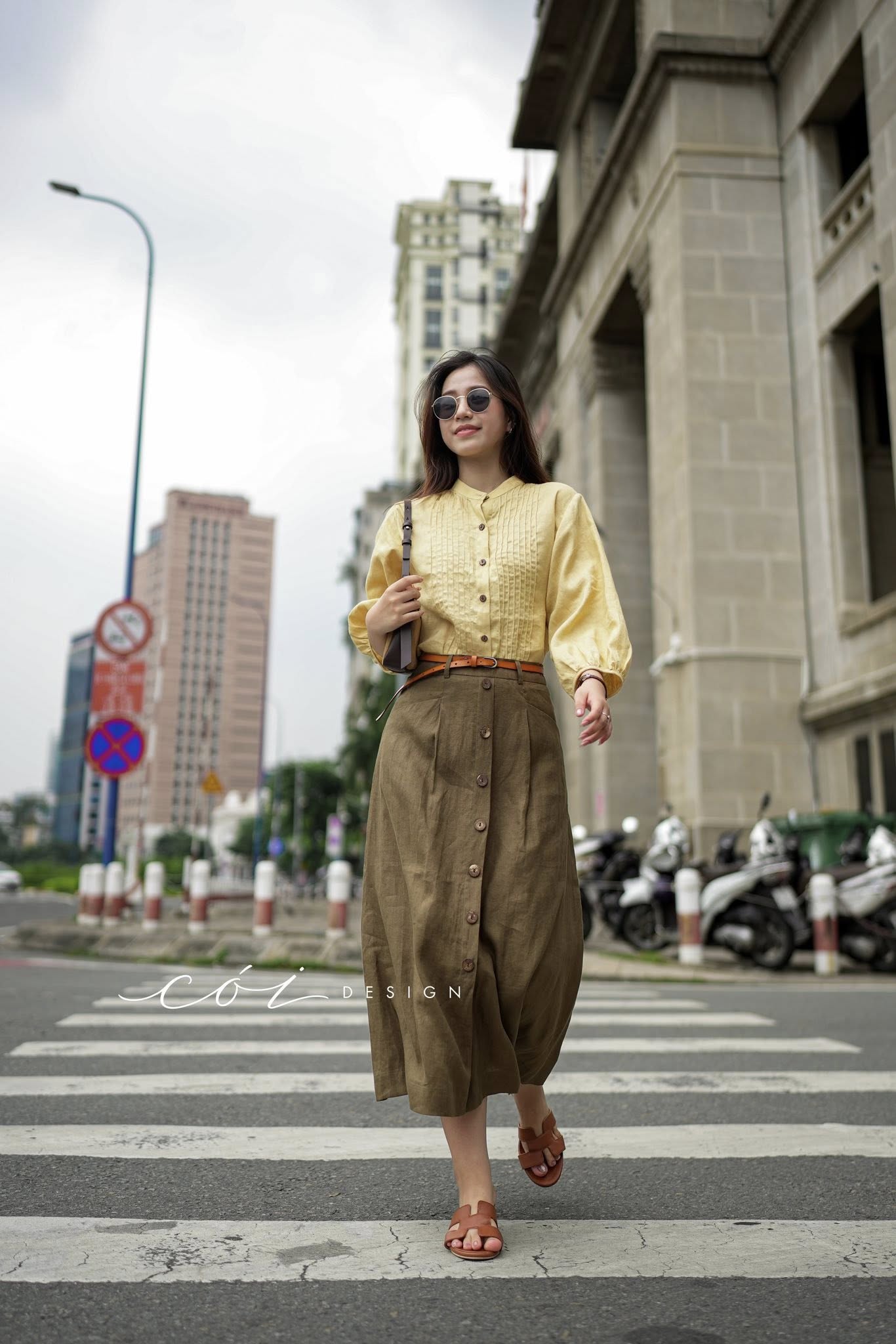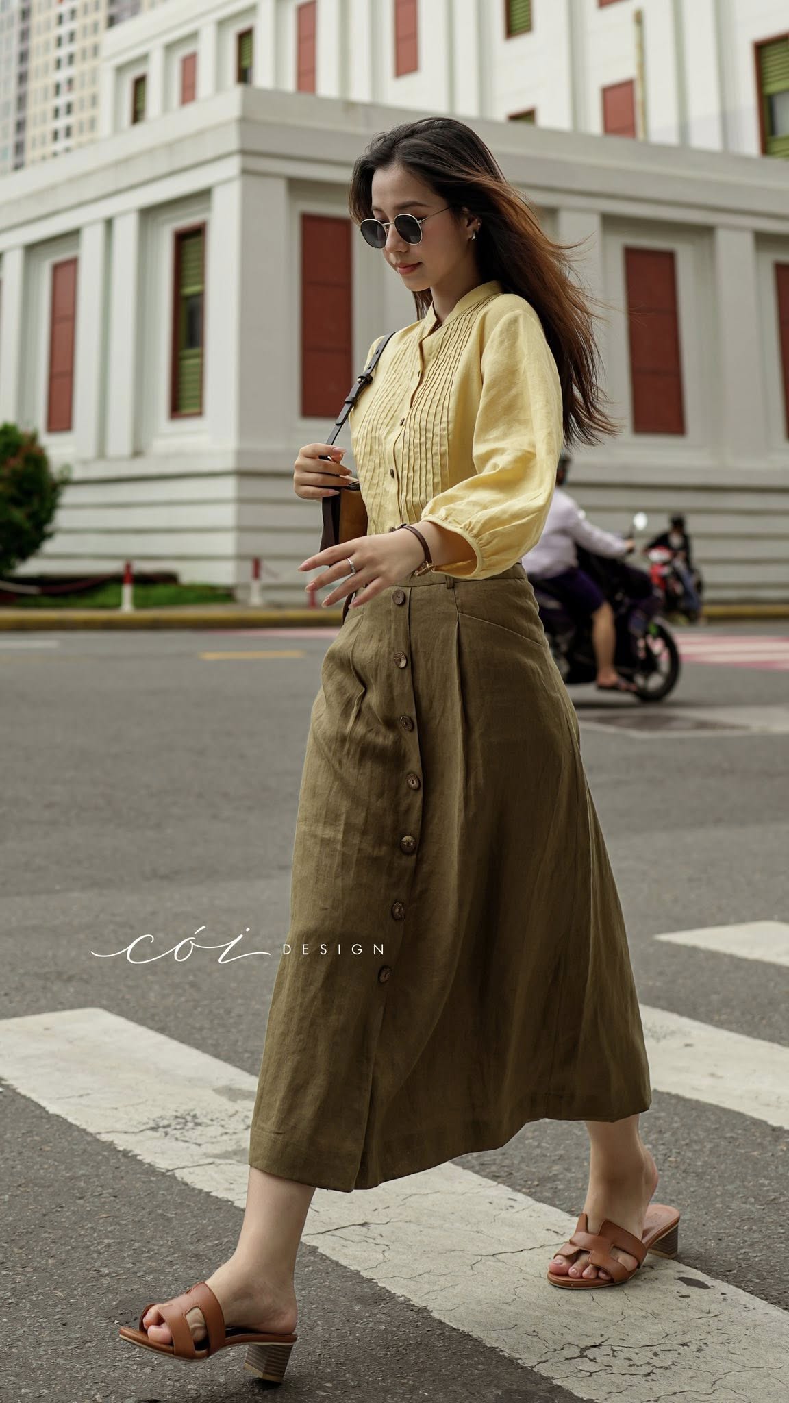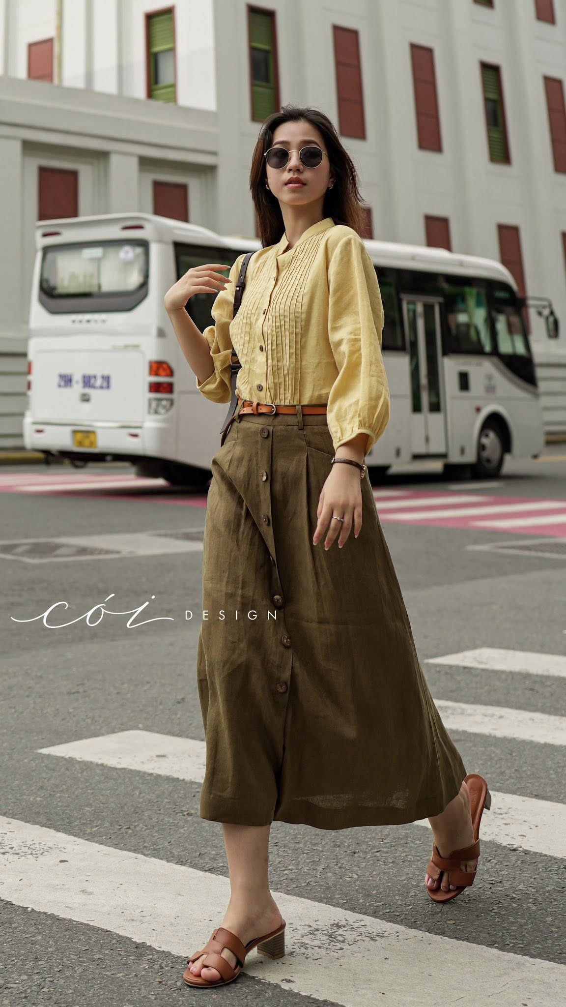 Chân váy cách điệu 2 túi nút dừa linen tưng premium Cói Design