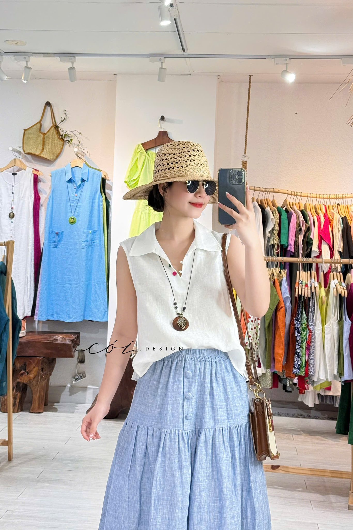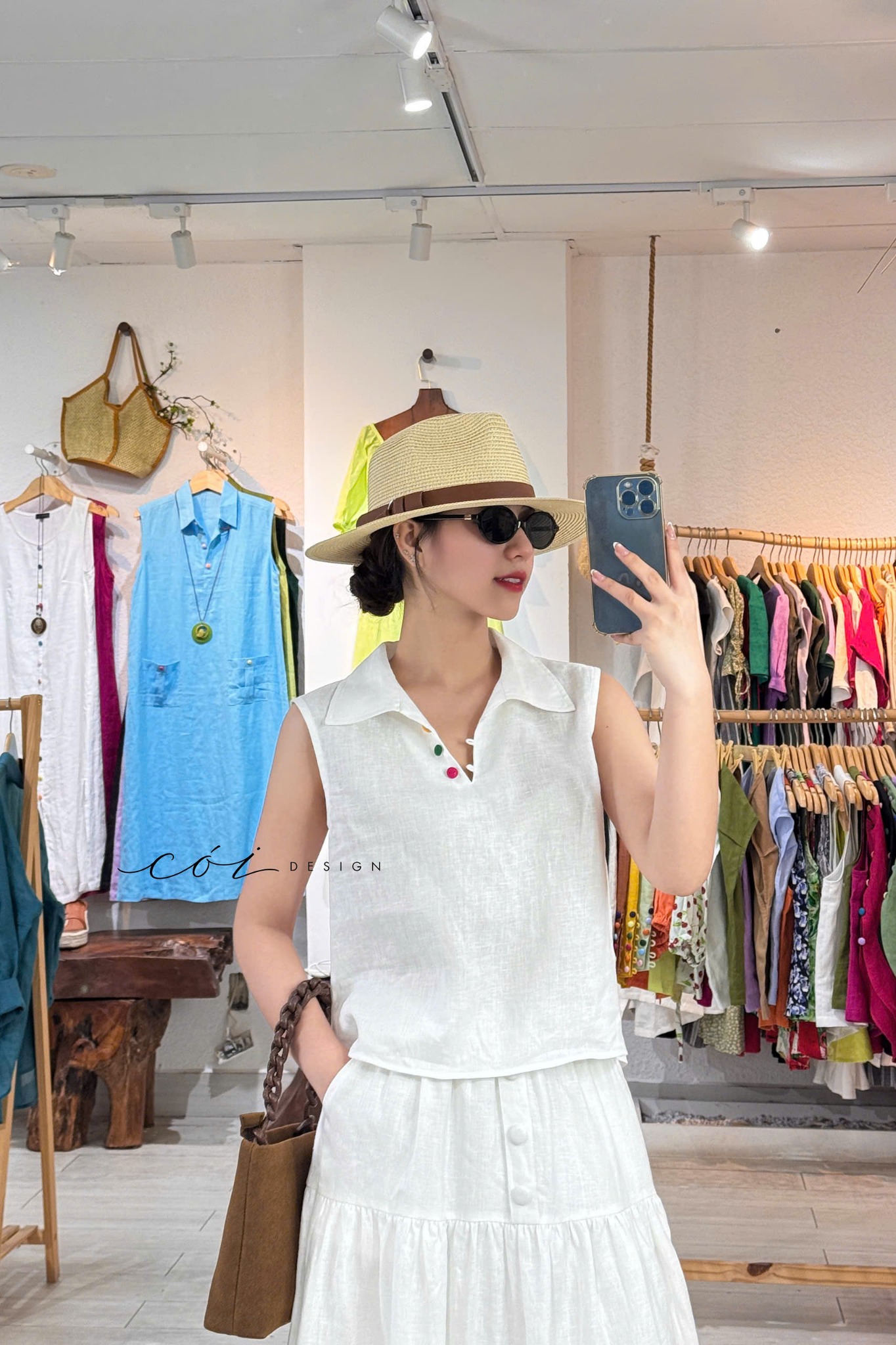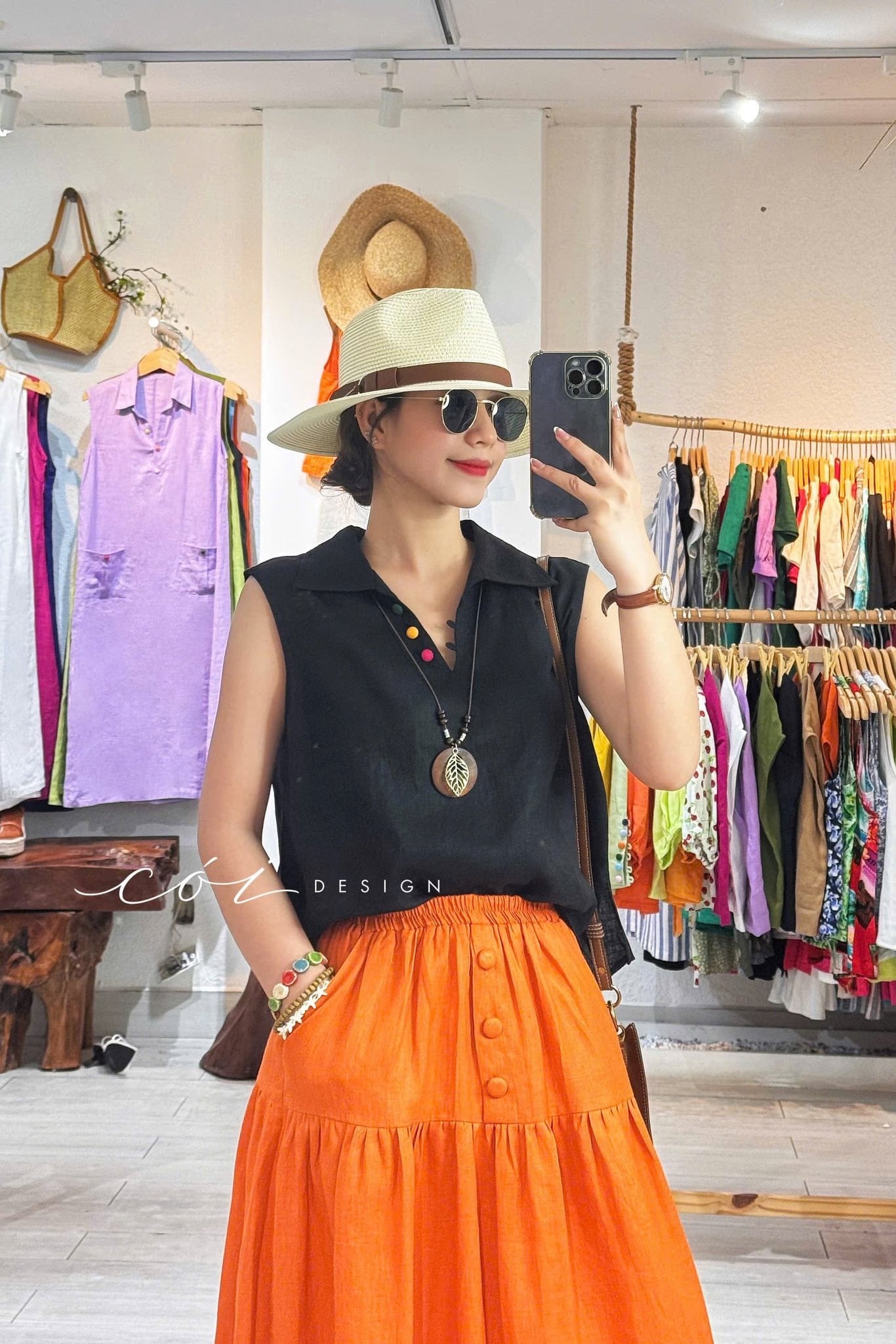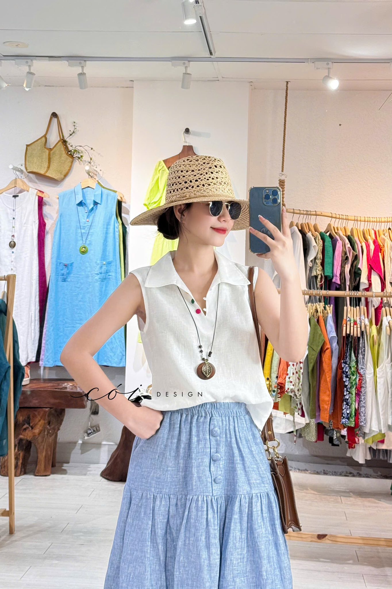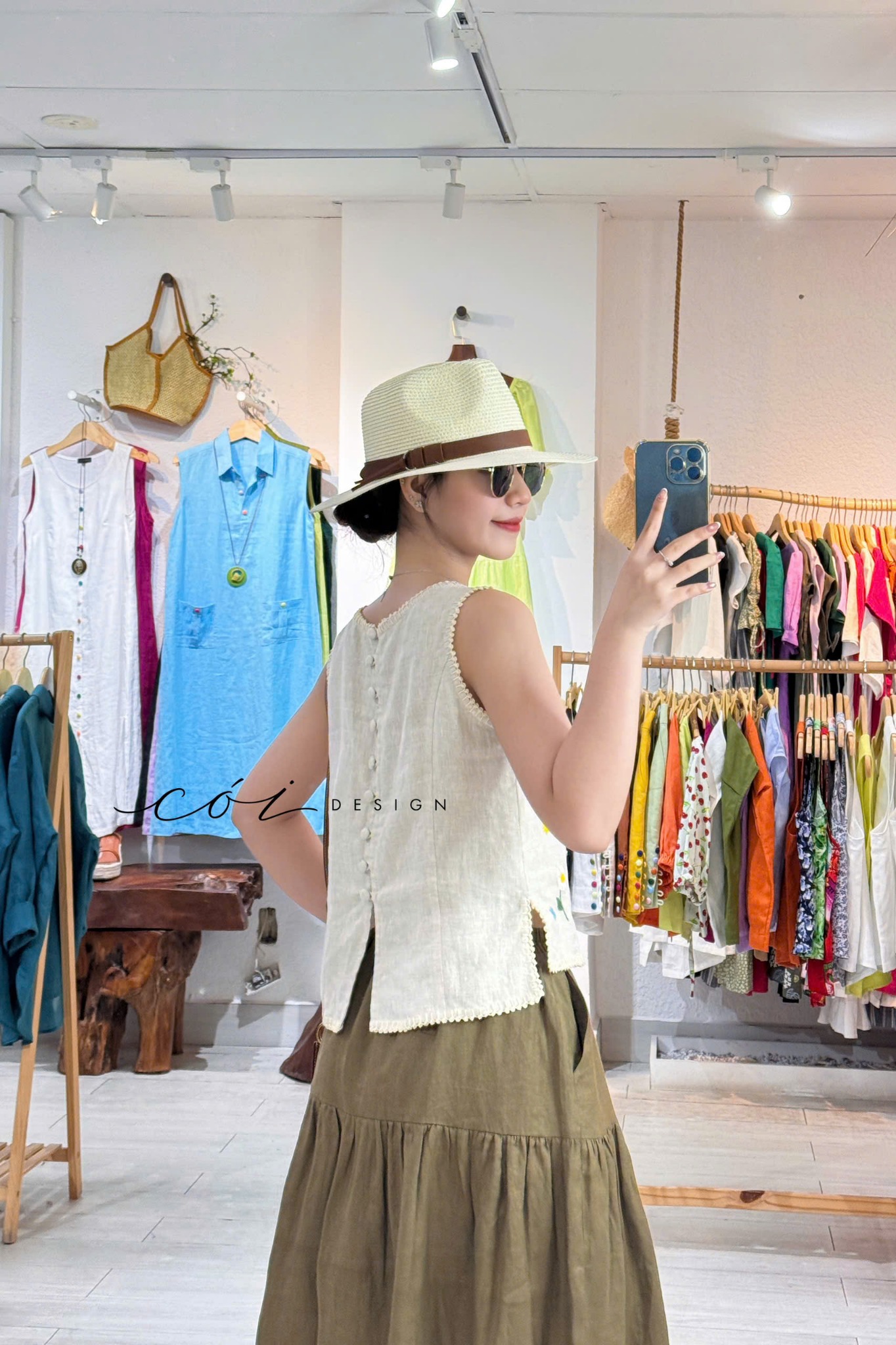 Chân váy 1 tầng nút bọc linen tưng premium Cói Design