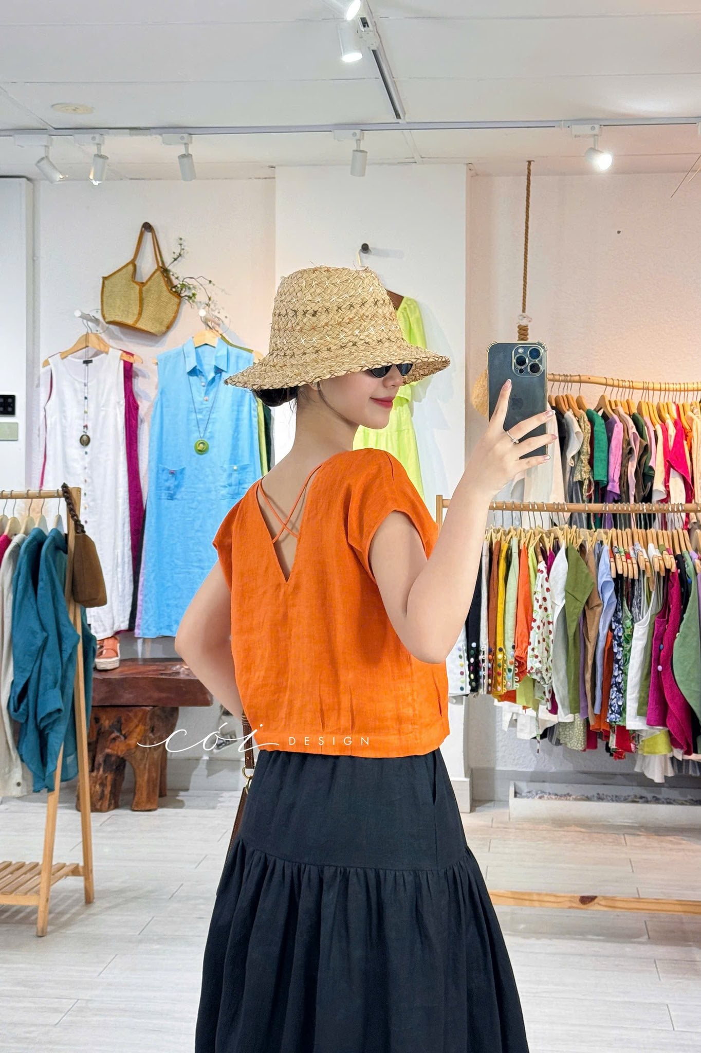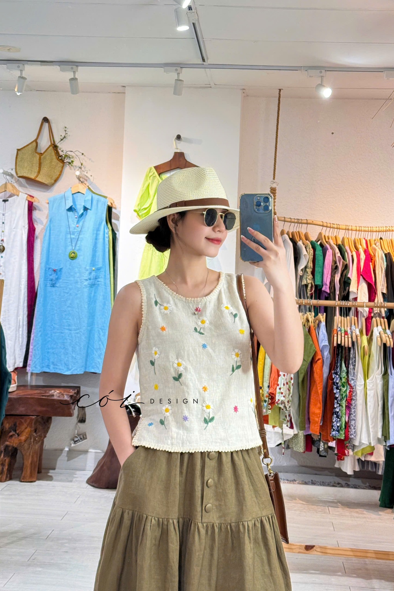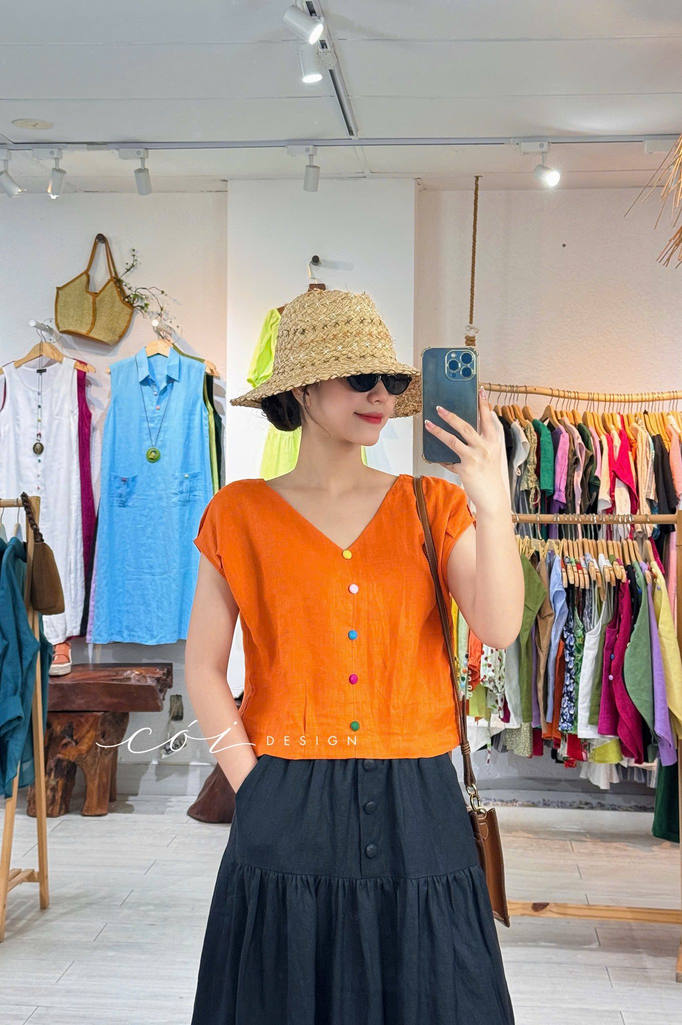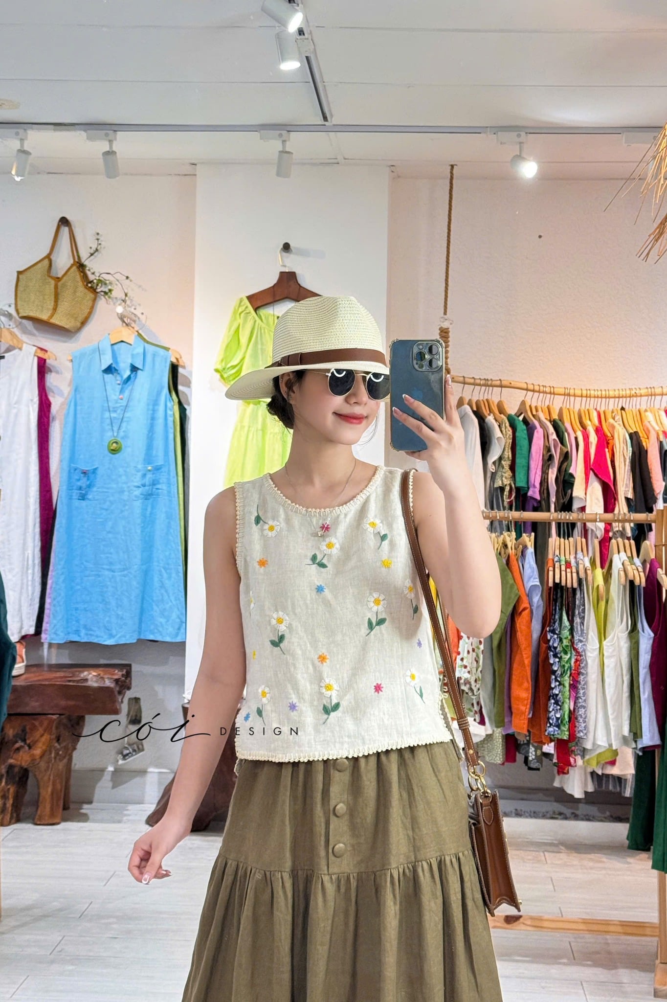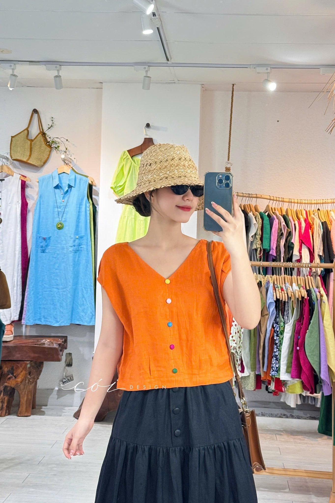 Chân váy 1 tầng nút bọc linen tưng premium Cói Design