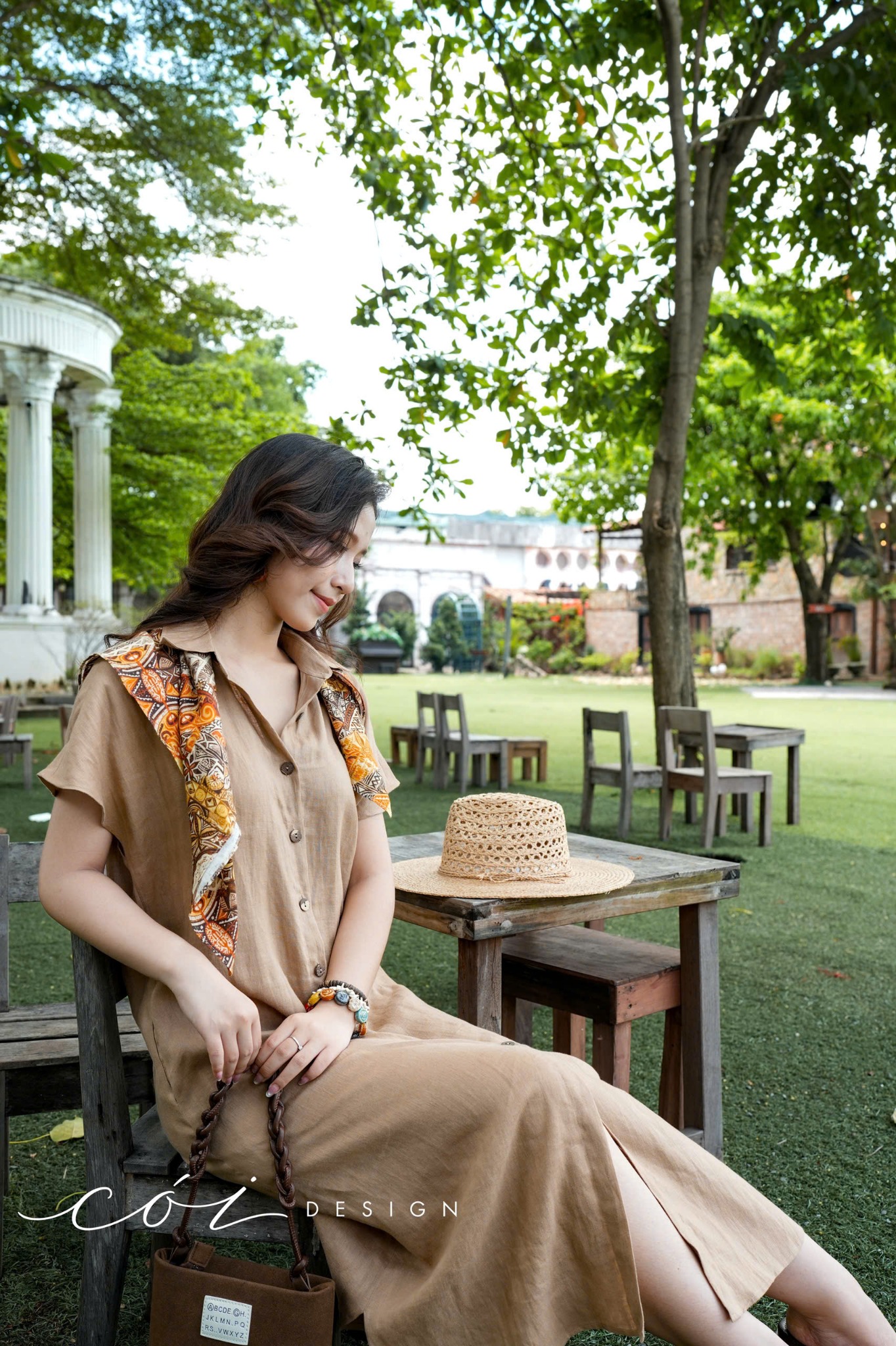 Đầm sơ mi suông vạt bầu linen tưng premium Cói Design