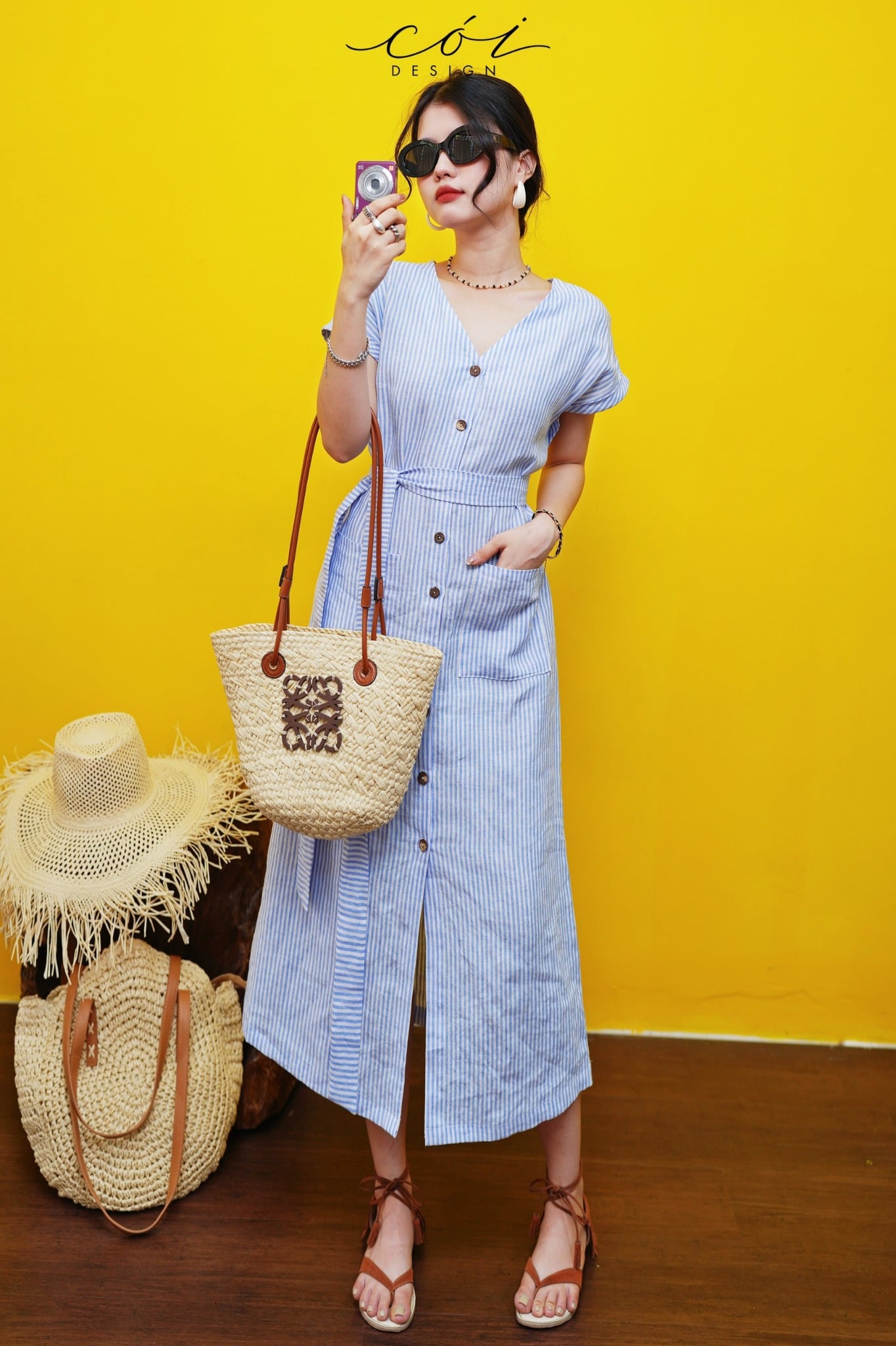 Đầm suông sọc kèm belt linen tưng Cói Design