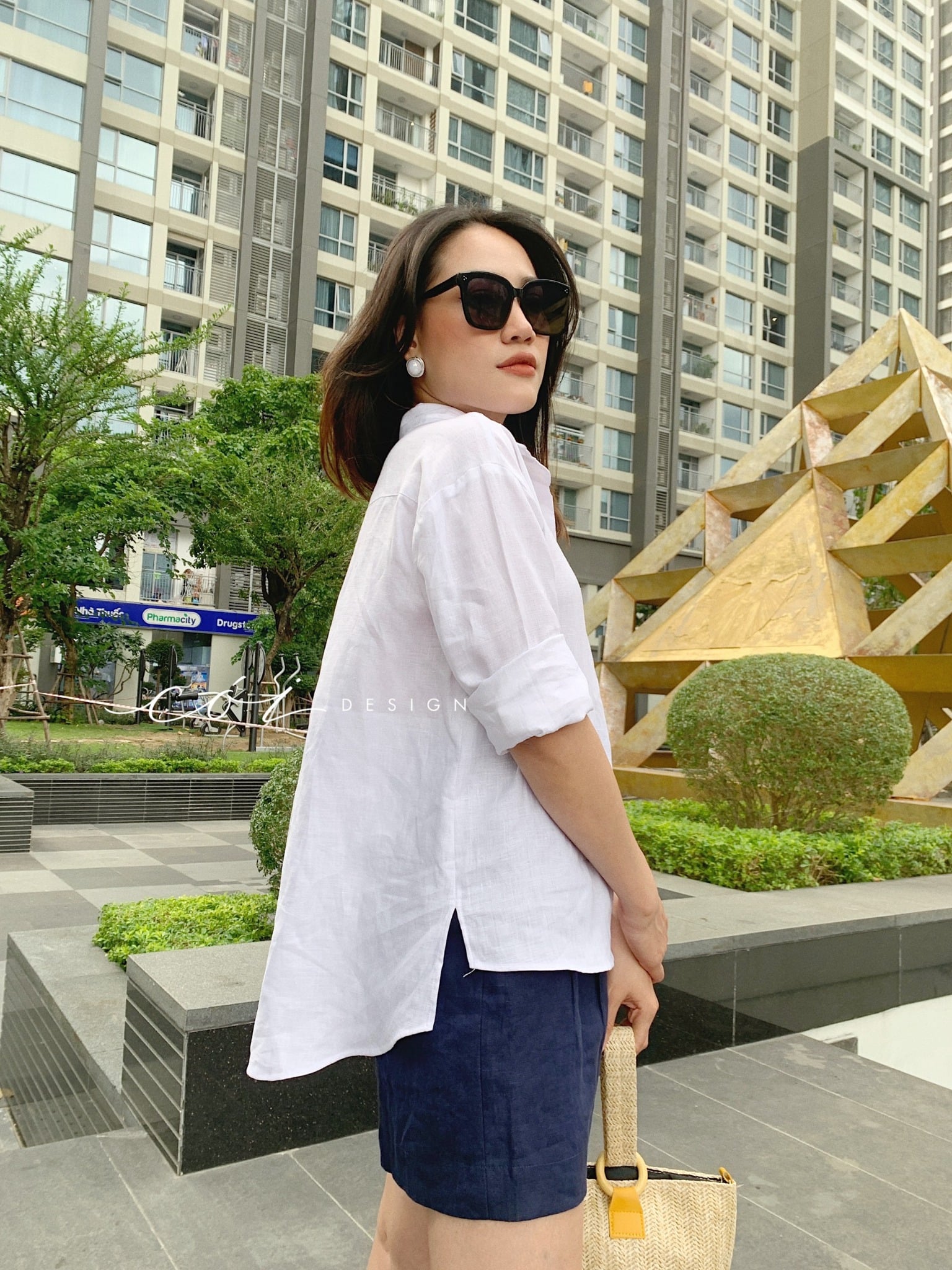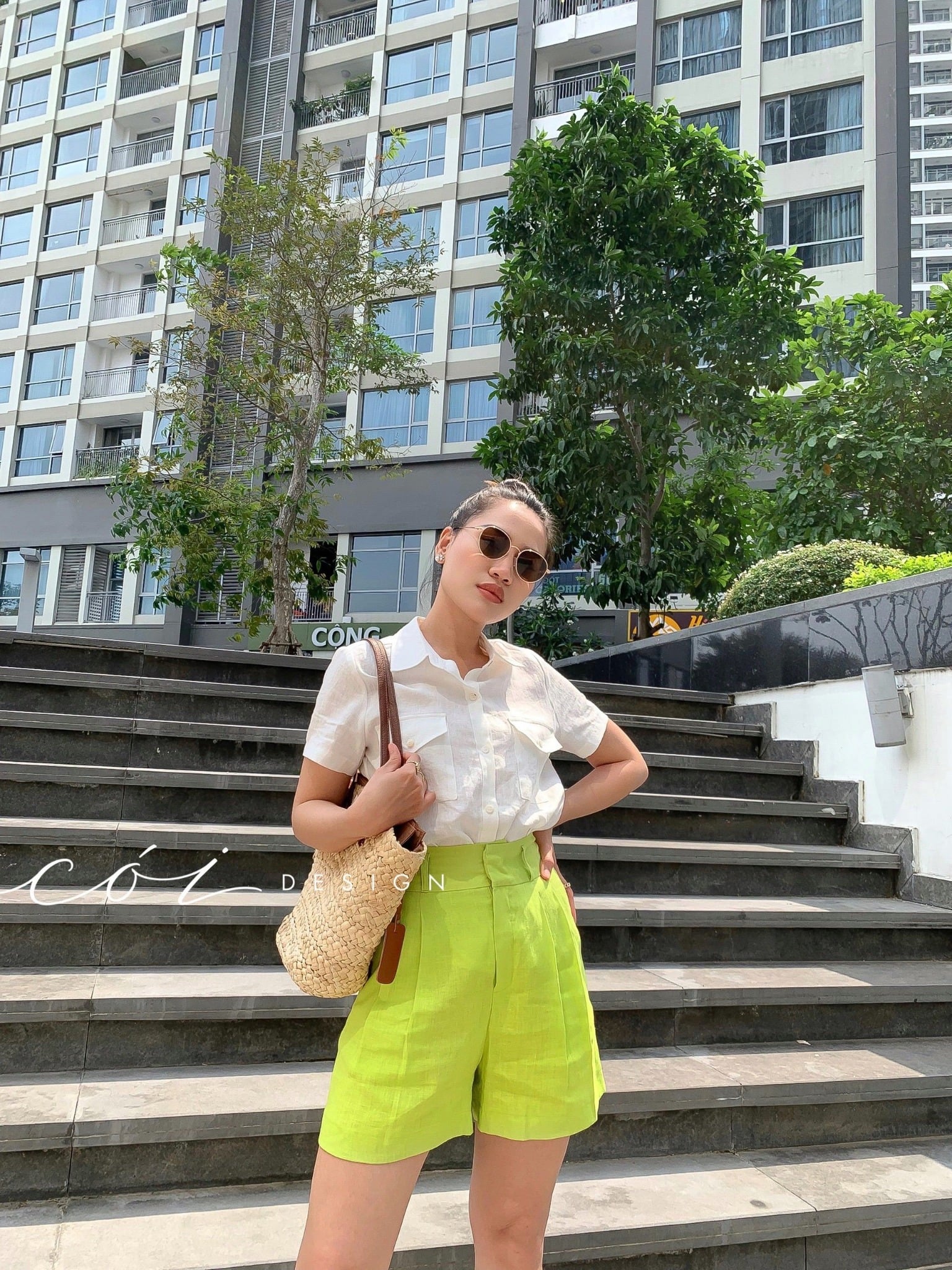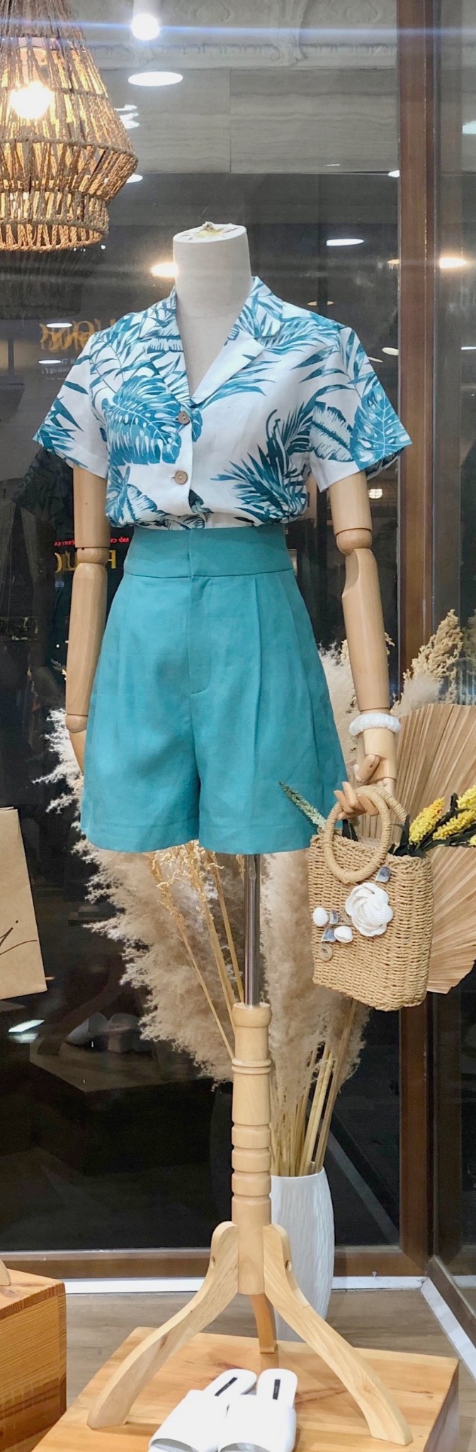 - Hình dáng: Quần short, form quần chữ A, lưng cao, túi xéo 2 bên sườn.