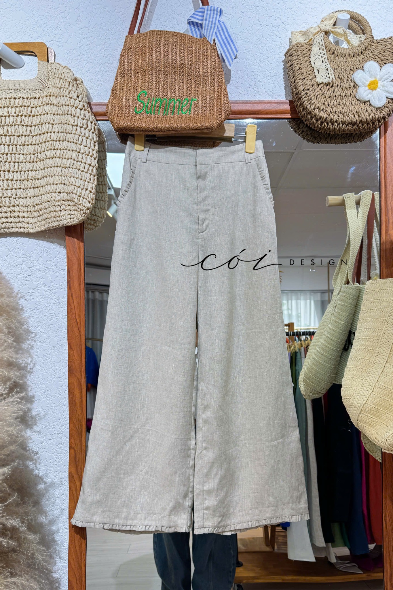 Quần suông phối bèo lai túi linen tưng premium Cói Design