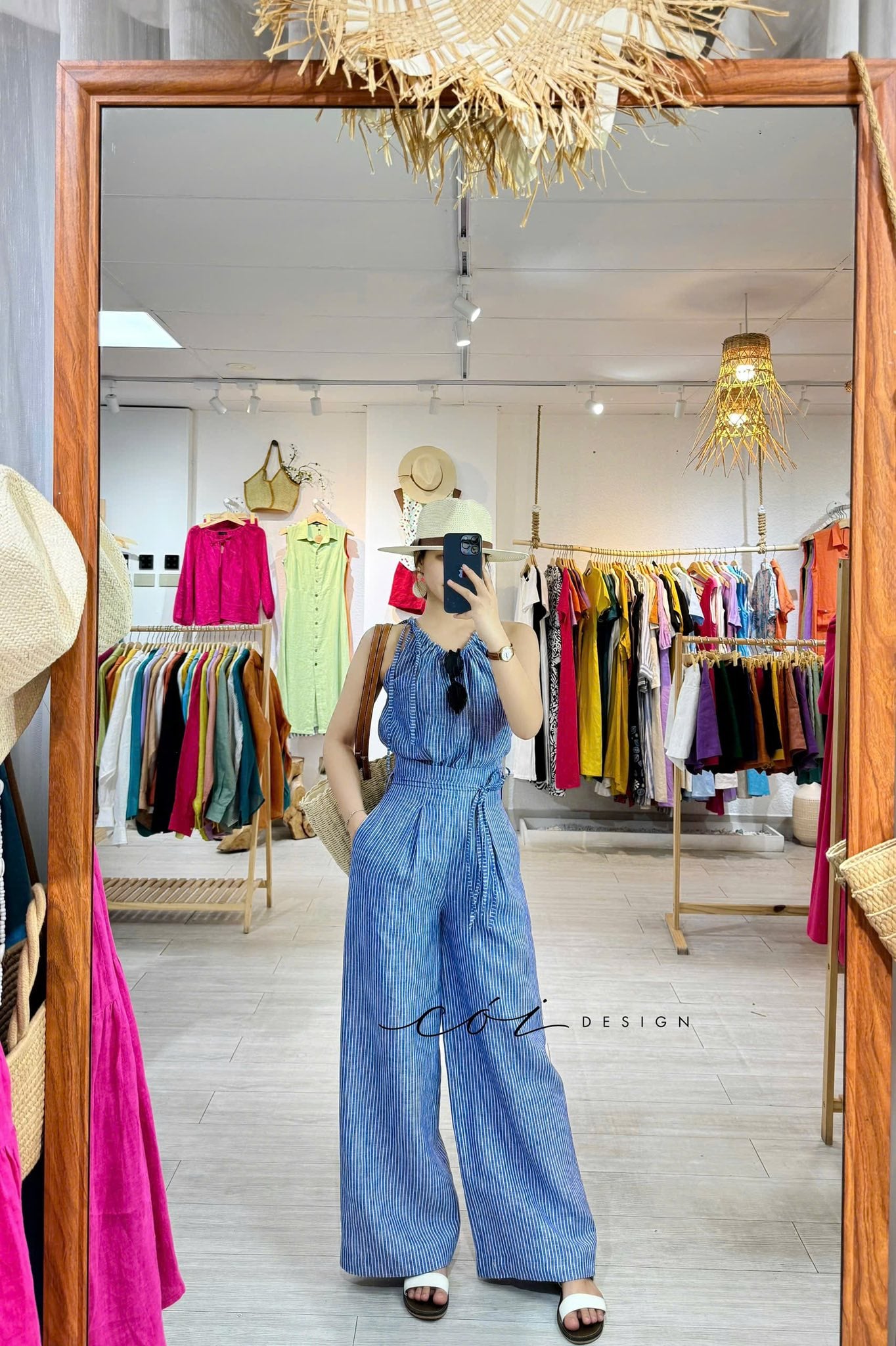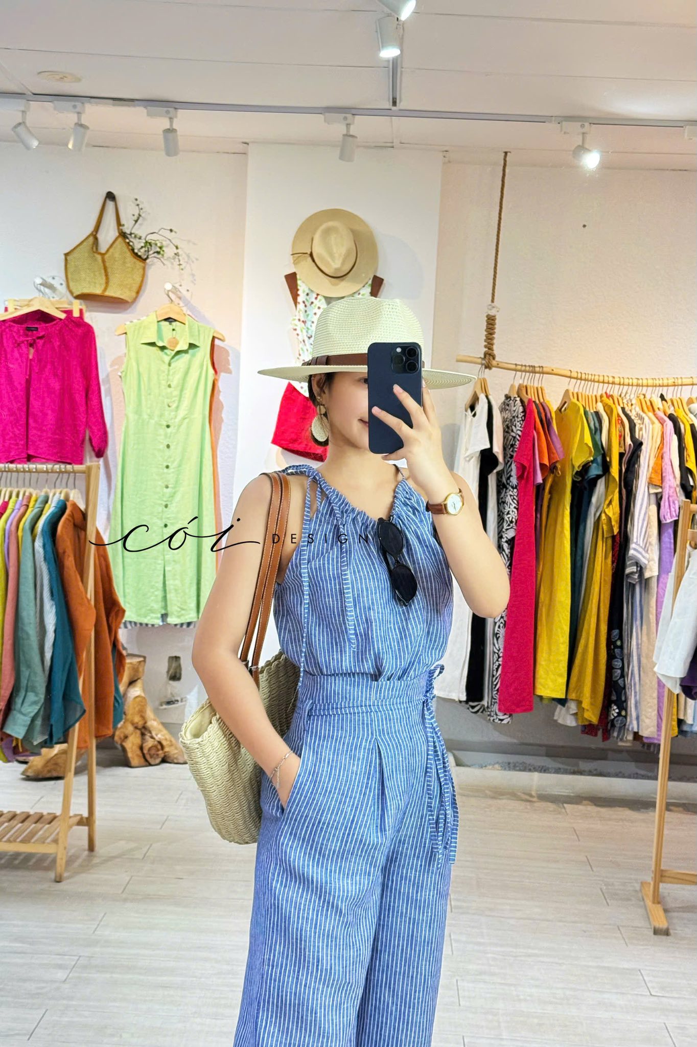 Quần suông sọc xếp ly phối dây linen tưng premium Cói Design